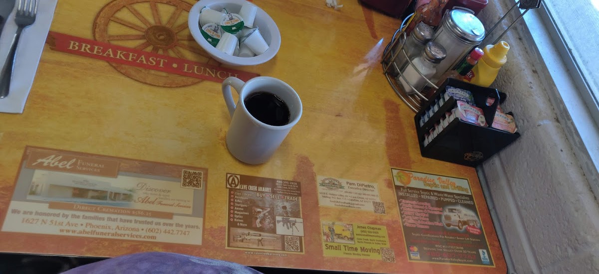 Nestled in the charming town of Cave Creek, Arizona, Wagon Wheel blends rustic ambiance with delightful comfort food. Known for its extensive menu featuring breakfast staples like hand-cut steaks and renowned chicken fried steak, it’s a local favorite that invites both families and tourists. The inviting decor, highlighted by quirky Old West elements, sets the stage for warm, attentive service, bringing a homey feel to every visit. Guests rave about the fluffy biscuits and gourmet burgers, making each meal a memorable experience. Wagon Wheel is more than just a restaurant; it's a beloved culinary landmark that captures the heart of this desert community.